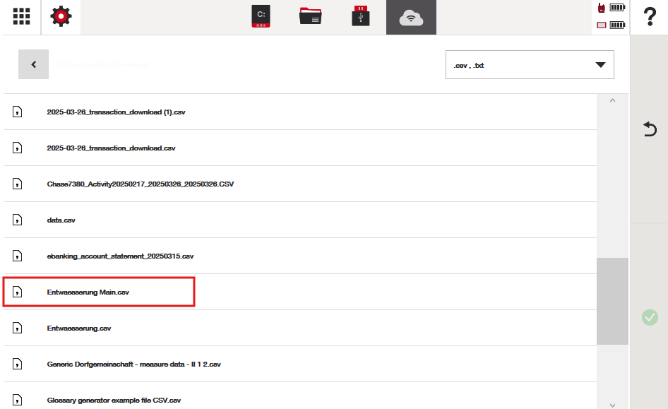Najděte soubor podle požadované cesty k souboru a stiskněte zelenou fajfku: