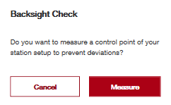 Kontrola zpětného zaměření umožňuje koncovým uživatelům zkontrolovat, zda totální stanice stále rozpoznává kontrolní body, které změřila během nastavení, jakožto nacházející se na stejném místě. Pokud během kontroly zpětného zaměření dojde k chybám, doporučuje se opětovné nastavení stanice.