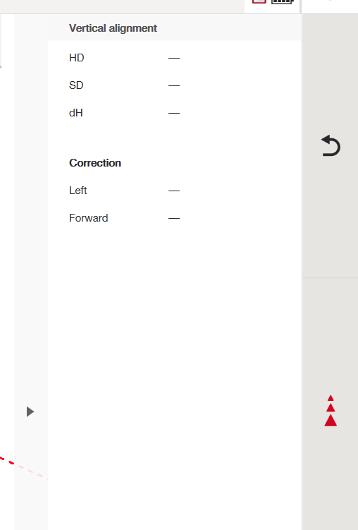 - Vzad znamená, že měřený bod je umístěn dále od totální stanice a musí být posunut směrem k totální stanici o zobrazenou hodnotu.