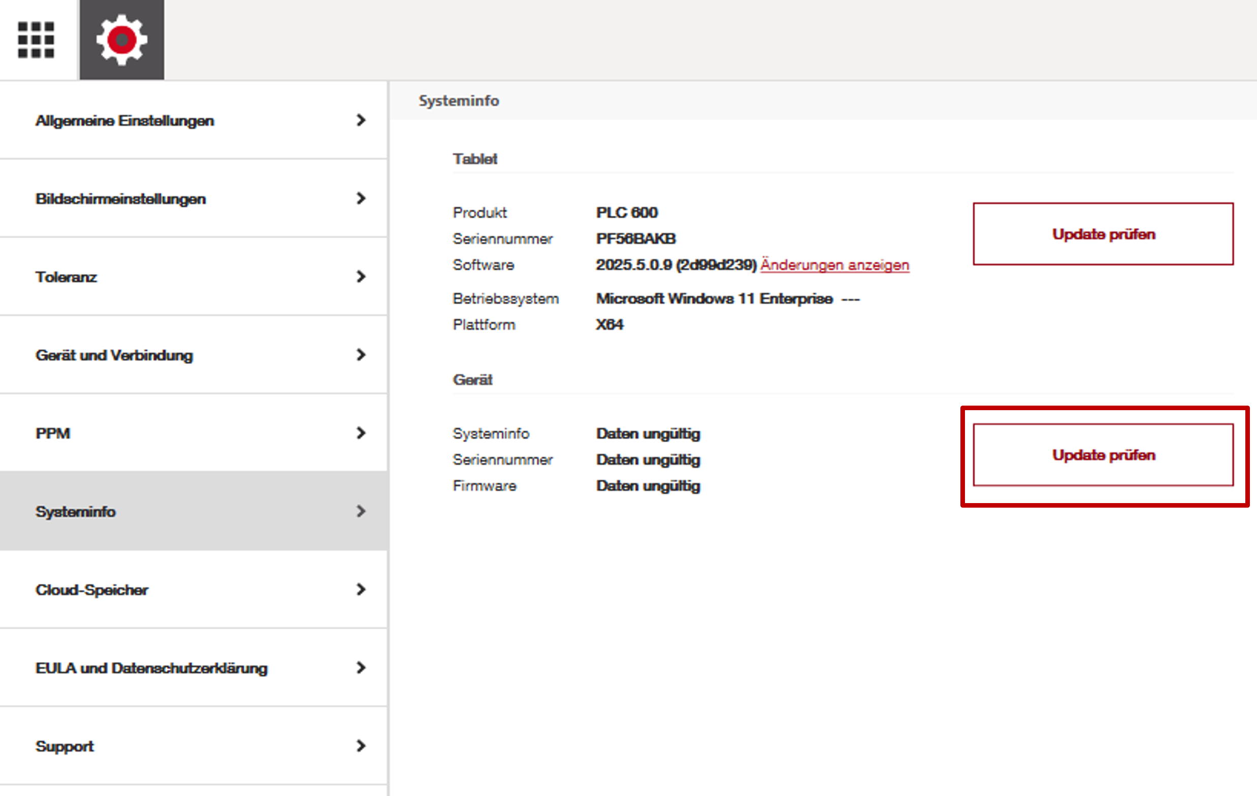 Für die Aktualisierung der Software ist lediglich eine Internetverbindung erforderlich, bevor Sie auf „Update prüfen“ klicken. Nach Abschluss der Installation wird ein Neustart des Tablets erforderlich.