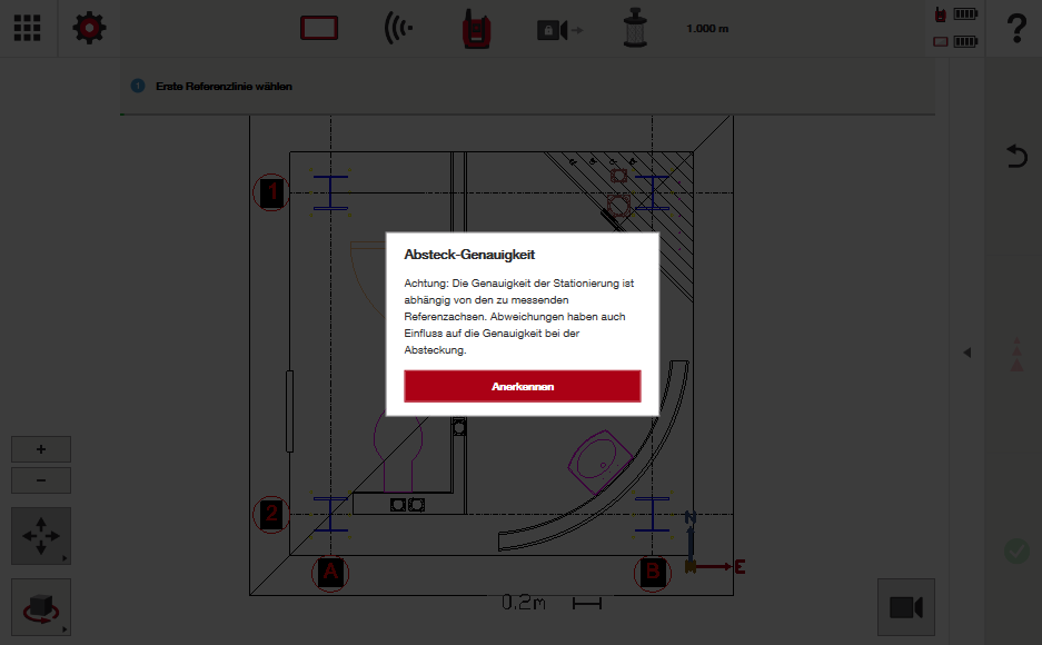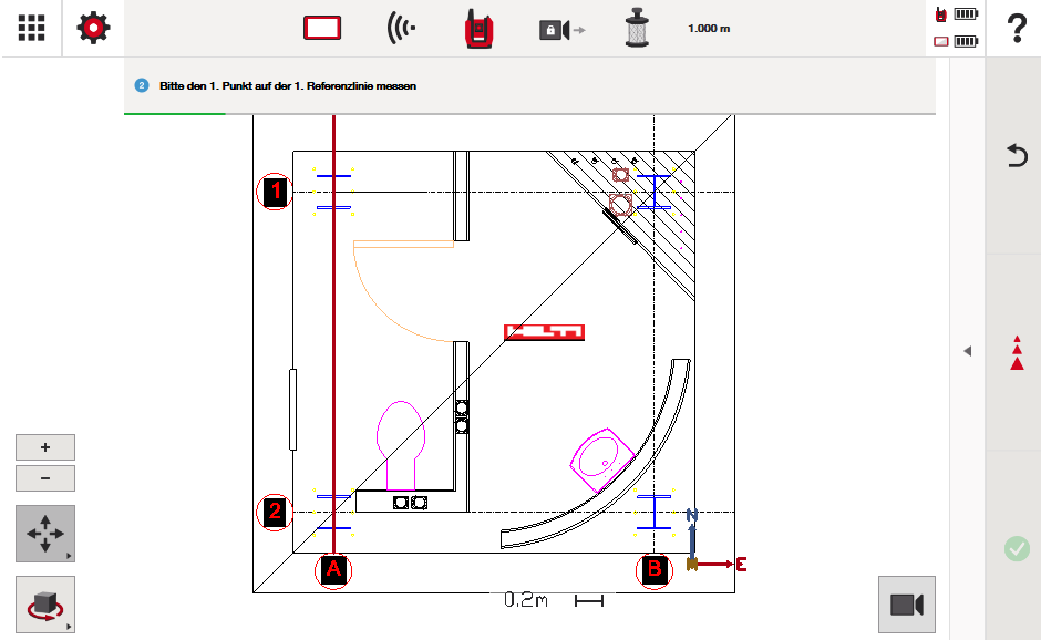 Vorgehensweise Schritt 2: Wählen Sie Ihre erste Bauachse aus und messen Sie 2 Punkte