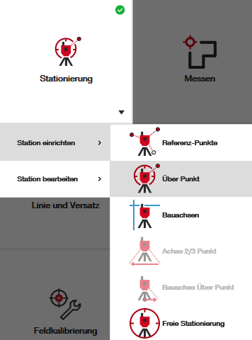 Mit einer PLT 300 und PLT 400 müssen andere Methode verwenden werden, z. B. die Stationierung über Referenz-Punkte oder Bauachsen.