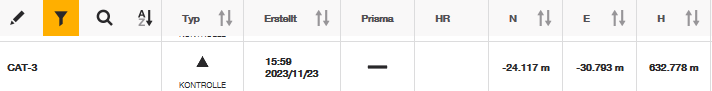 Beachten Sie, dass die Totalstationskoordinaten mit den Koordinaten von CAT-3 (dem ausgewählten Punkt) aus der Punktliste identisch sind: