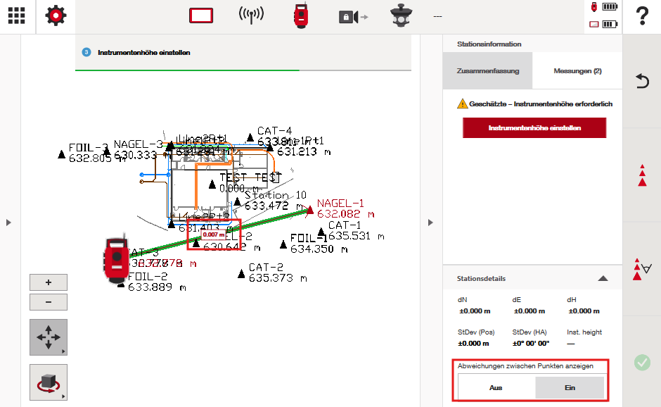Um mit den Höhen in diesem Stationierungsvorgang zu beginnen, klicken Sie auf „Instrumentenhöhe einstellen”.