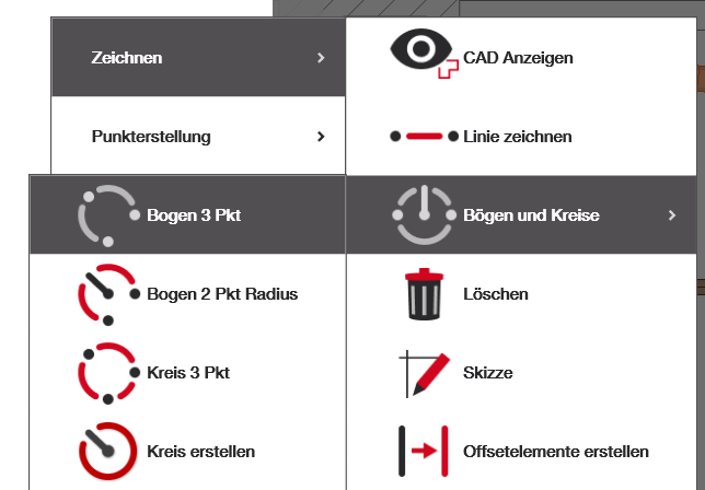- Um sie über das Menü auf der linken Seite zu öffnen, folgen Sie diesem Pfad: Zeichnen > Bögen und Kreise > Bogen 3 Pkt