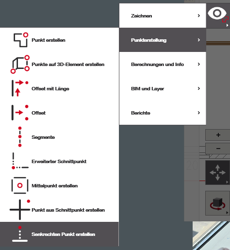 - Punktart und Objekt auswählen und Punkt erstellen: Wählen Sie aus, wo Sie Ihren Punkt haben möchten, in Bezug auf was und um welche Art von Punkt es sich handelt.