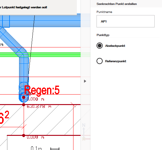 Diese Anwendung ist nützlich, wenn Sie Punkte zu einer Linie in Ihrer Datei hinzufügen möchten, wobei die Punkte direkt in einer Linie (senkrecht/lotrecht) zu einem anderen Referenzpunkt liegen.