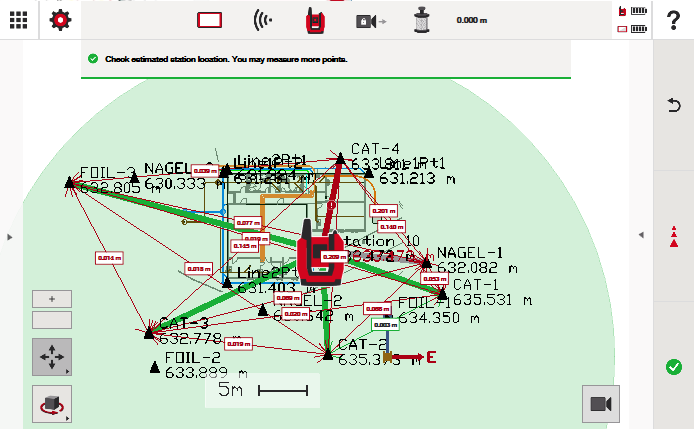 Simplemente presione la marca de verificación verde en la parte inferior derecha de la pantalla cuando esté satisfecho con sus resultados de estacionamiento. Su unidad principal ahora tendrá una coordenada específica, que representa dónde está ubicada en el sitio de trabajo. Conocerá su ubicación y orientación, listo para guiarle en sus aplicaciones.