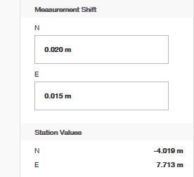 Shift Station solo se puede usar en asociación con "Control Line Stationing". Es una opción para ajustar las coordenadas X,Y de la estación total después de que se haya completado el proceso de "Control Line Stationing". Puede necesitar esta aplicación para ajustar manualmente las coordenadas de la estación total dependiendo de cualquier error en las ubicaciones de su línea de control durante el estacionamiento.