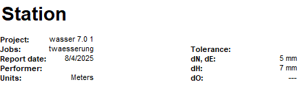 - dN, dE, dH, dO: Estos indican las desviaciones de tu configuración de estacionamiento después de que se midieron los puntos de control y se calculó la ubicación de la estación.