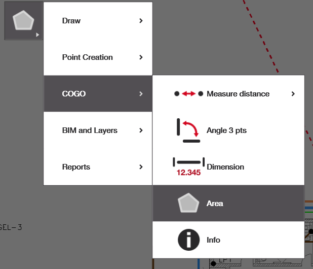 Las mediciones en vivo significan que puedes usar el punto en el que tu estación total está bloqueada como uno de los puntos en tu área. Esto es conveniente en caso de que desees medir áreas mientras te mueves con el prisma o si necesitas cambiar la ubicación de un punto en tiempo real. Para actualizar tus mediciones (por ejemplo, después de cambiar de ubicación), puedes hacer clic en los tres triángulos rojos en el lado derecho).