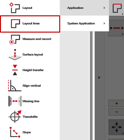 Käyttäessäsi Linjan asettelua viittaat yleensä linjaan CAD-tiedostostasi. Avaa vain sovellus, valitse haluamasi linja ja siirry oikealla olevaan ”Mittaa” -välilehteen aloittaaksesi työn kyseisestä linjasta.