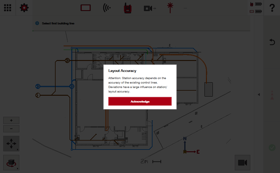 Muista, että ohjausviivan asemointi edellyttää CAD-tiedoston tai linjatyön käyttöä projektissasi, koska kokonaisasema sijoittaa itsensä digitaalisen suunnitelmasi mukaisesti mittaussovelluksia varten.