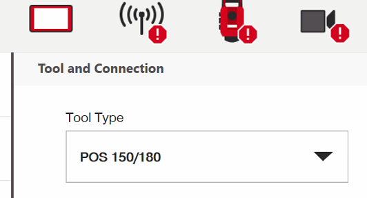 Tabletilla siirry asetuksiin > työkalu ja yhteys, ja varmista, että "POS 150/180" on valittu työkalutyypiksi.