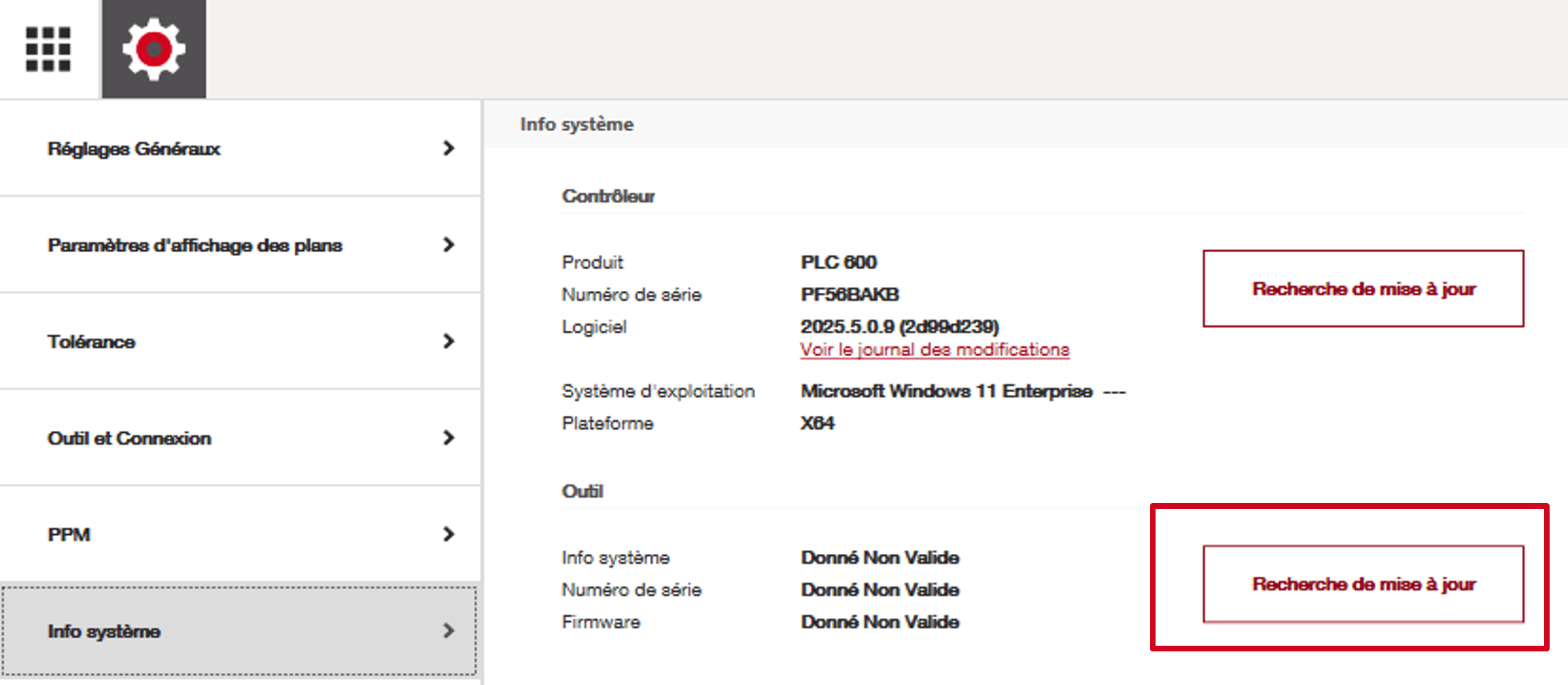 Le logiciel est le programme utilisé pour faire fonctionner l'outil. La mise à jour du logiciel du contrôleur garantit que la tablette dispose des dernières fonctionnalités et mises à jour pour faire fonctionner la station totale. Vous pouvez consulter les notes de mise à jour pour la mise à jour que vous avez installée en cliquant sur le lien « Journal des modifications » à côté du numéro de version du logiciel affiché.
