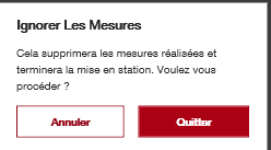 Appuyez sur la coche verte pour accepter la mise en station ou sur le bouton Retour pour annuler. Si vous annulez, le logiciel vous confirmera que la mise en station d'origine sera toujours utilisée pendant votre travail :