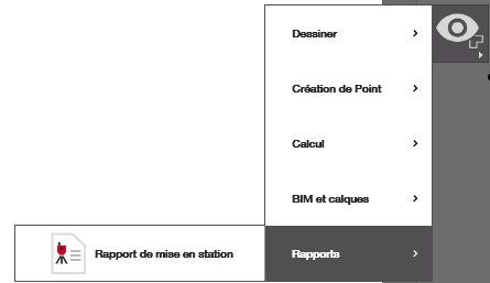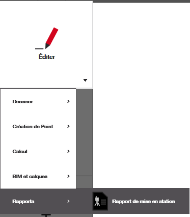 Le menu Rapport de mise en station se trouve sous l'icône d'édition sur l'écran d'accueil. Accédez aux rapports et vous aurez la possibilité d'exporter un rapport de mise en station :