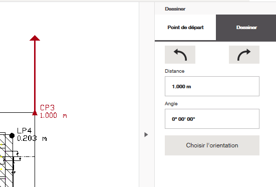 La « distance » est la distance que vous souhaitez que la ligne suivante parcoure à partir du point de départ, et l'« angle » est l'angle auquel vous souhaitez qu'elle tourne à partir de ce point. Notez que 0° correspond à l'orientation vers le haut (nord du plan).