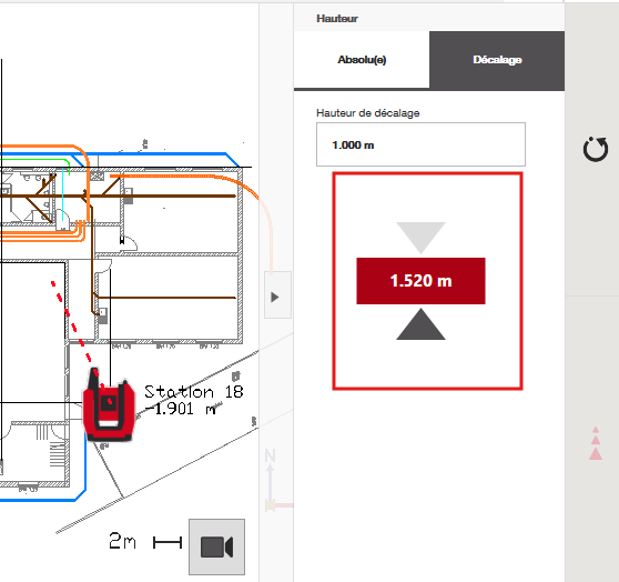 Vous pouvez également saisir un décalage par rapport à votre hauteur de référence. L'outil fonctionnera alors de la même manière que dans l'onglet « Décalage » pour naviguer vers la hauteur de décalage demandée :