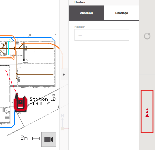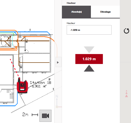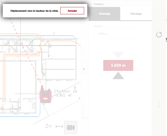 Le logiciel indiquera alors immédiatement la direction (vers le haut ou vers le bas) que vous devez suivre pour atteindre la hauteur souhaitée par rapport au repère :