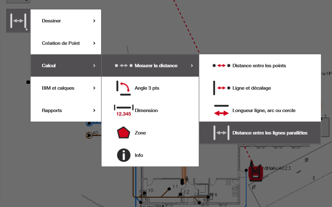 Sélectionnez deux lignes parallèles et mesurez : suivez les instructions pour obtenir votre résultat.