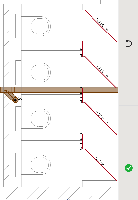 Sélectionnez les lignes que vous souhaitez mesurer et étiqueter. Elles devraient devenir rouges. Pour désélectionner une ligne, cliquez à nouveau dessus ; elle devrait reprendre sa couleur d'origine. Lorsque vous avez sélectionné toutes les lignes auxquelles vous souhaitez ajouter des étiquettes de dimension, cliquez sur la coche verte à droite. Vos étiquettes de dimension apparaîtront au-dessus ou à droite des lignes sélectionnées.