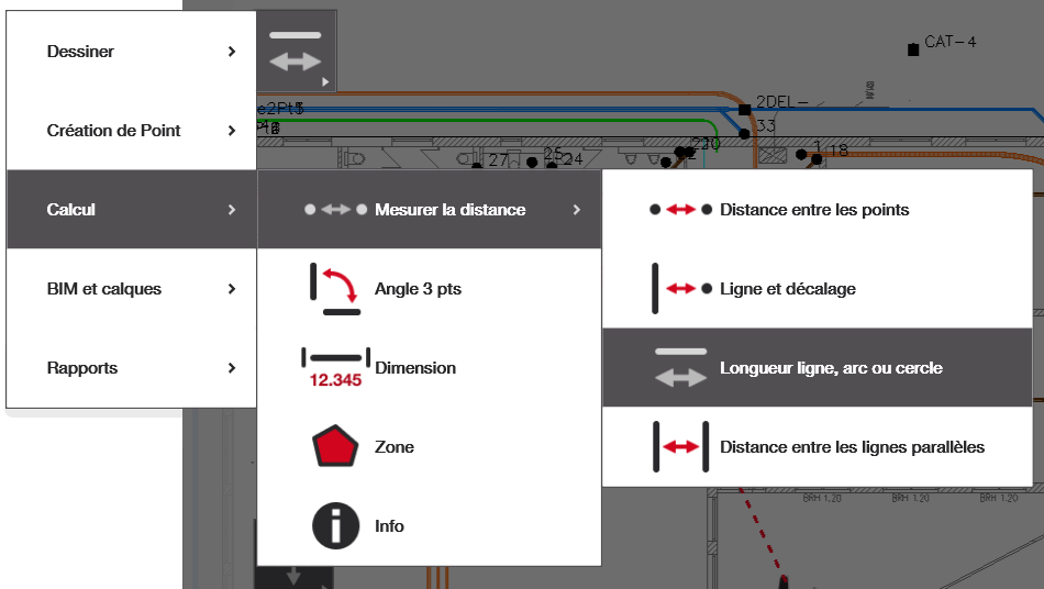 L'application 'Longueur ligne, d'arc ou de cercle' vous fournit des informations sur l'un de ces objets, notamment sa longueur, son inclinaison, sa distance, sa hauteur et sa direction.