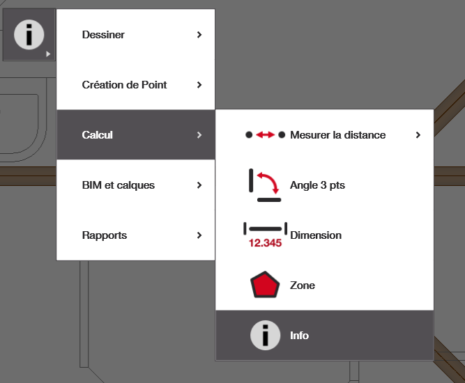 L'application Info vous fournit des informations sur les points, les lignes, les arcs et les cercles contenus dans votre fichier numérique. Vous pouvez observer la longueur des objets, les coordonnées des points de départ et d'arrivée, ainsi que des informations sur le rayon. L'application fournit même des informations sur des points qui ne figurent pas techniquement dans votre fichier de points, par exemple en appuyant sur les extrémités des lignes ou en recherchant les coordonnées du point central d'un cercle.