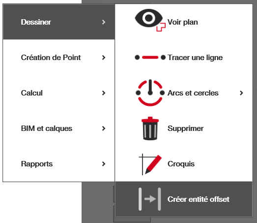 L'application Créer entité offset vous permet de créer rapidement des décalages de lignes, de cercles et d'arcs. Cela est utile, par exemple, pour créer des limites de murs intérieurs à partir du mur extérieur ou pour indiquer les lignes de rails de cloison sèche. Cela permet de maintenir la cohérence dimensionnelle lorsque vous travaillez avec des lignes.