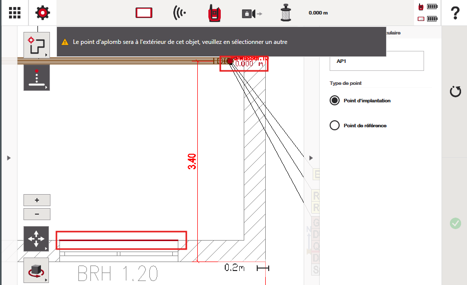 Une fois l'application ouverte, sélectionnez le point de votre dessin que vous souhaitez utiliser comme référence (le point qui sera projeté). Une fois sélectionné, ce point devrait devenir rouge.