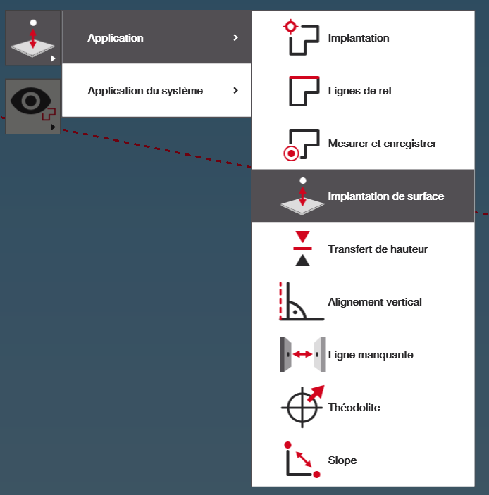 L'application Implantation de surface est couramment utilisée pour des tâches de contrôle et de vérification de hauteur lors des travaux d'excavation, de nivellement et d'installation.