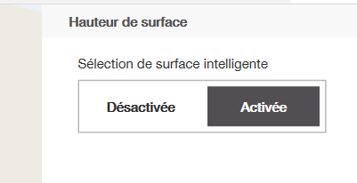 Il est recommandé de garder la Sélection intelligente de surface activée, car cela simplifie l'utilisation et réduit le risque de sélectionner une surface incorrecte.