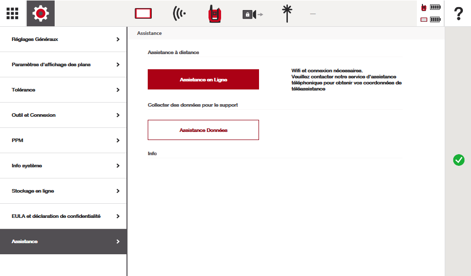 Si aucune des options ci-dessus ne fonctionne dans votre situation, accéder à Internet peut nécessiter une déconnexion temporaire du PLT. Vous pouvez alors vous connecter au Wi‑Fi du chantier ou à un point d’accès mobile, recueillir les informations ou le support dont vous avez besoin, puis vous reconnecter à l’outil par la suite.