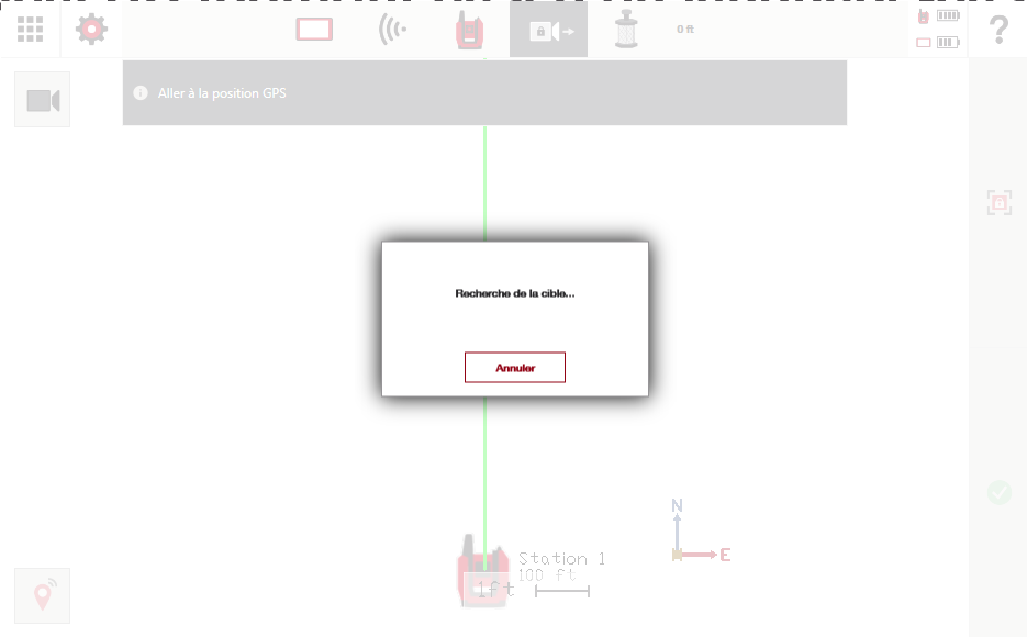 - L’outil se tourne vers la position GPS estimée de la tablette. Si le prisme n’est pas proche de la tablette, la connexion au prisme peut ne pas s’établir.