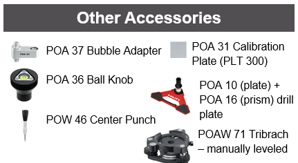 - POA 66 Görgős kocsi lézer adapter (vízmértékes lézer, amely a POA 27 görgős kocsihoz és a POA 25 vagy POA 20 prizmához használható)