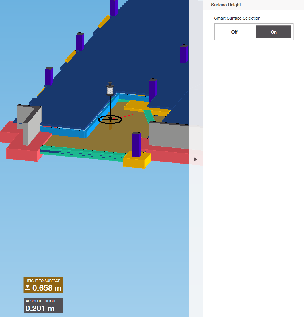 Ha engedélyezve van, az alkalmazás automatikusan kiválasztja és kiemeli a magasság referenciájaként használt felületet közvetlenül a CAD nézetben.