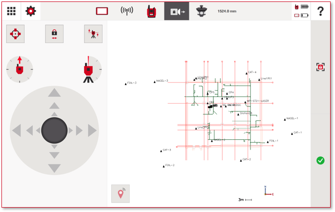 Quando l'utente finale lavora in modalità connessione radio (o Bluetooth), dove non è possibile vedere la telecamera, ora è possibile connettersi più facilmente al proprio prisma. Premendo l'icona della telecamera in alto allo schermo, l'utente finale avrà un joystick per muovere lo strumento autonomamente oppure, se è stazionato, può cliccare sull'area del loro CAD dove si trova il prisma e semplicemente premere l'icona quadrata "blocca" a destra dello schermo. Nota - la ricerca del prisma funzionerà solo con il prisma in vetro POA 20 360°.