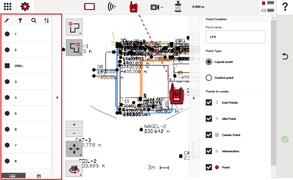 Il menu di modifica dei punti si trova sul lato sinistro dello schermo quando stai lavorando all’interno del tuo file CAD: