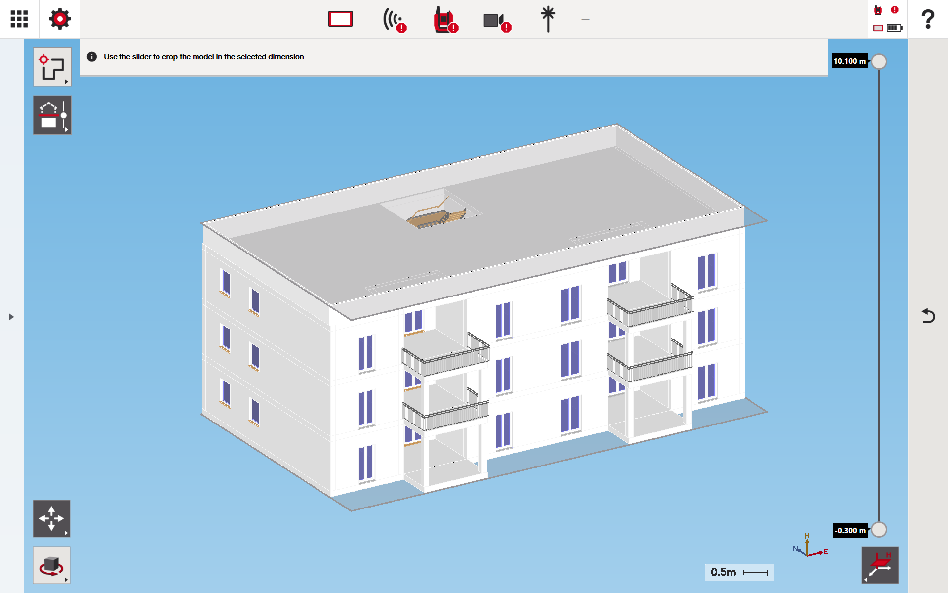 Il sezionamento in una direzione orizzontale permette di concentrarsi su una sezione stretta dell'edificio.