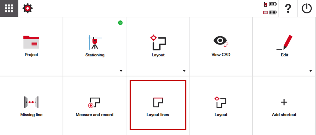 Om “Line Layout” te gebruiken, moet je eerst gestationeerd zijn (d.w.z. het gereedschap moet de coördinaten kennen waar het zich op jouw bouwplaats bevindt). Zorg ervoor dat je je gereedschap stationeert voordat je probeert “Line Layout” te gebruiken.