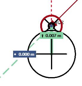 ROOD punt bevindt zich 7 mm van het gewenste punt, met een tolerantie-instelling van 6 mm.