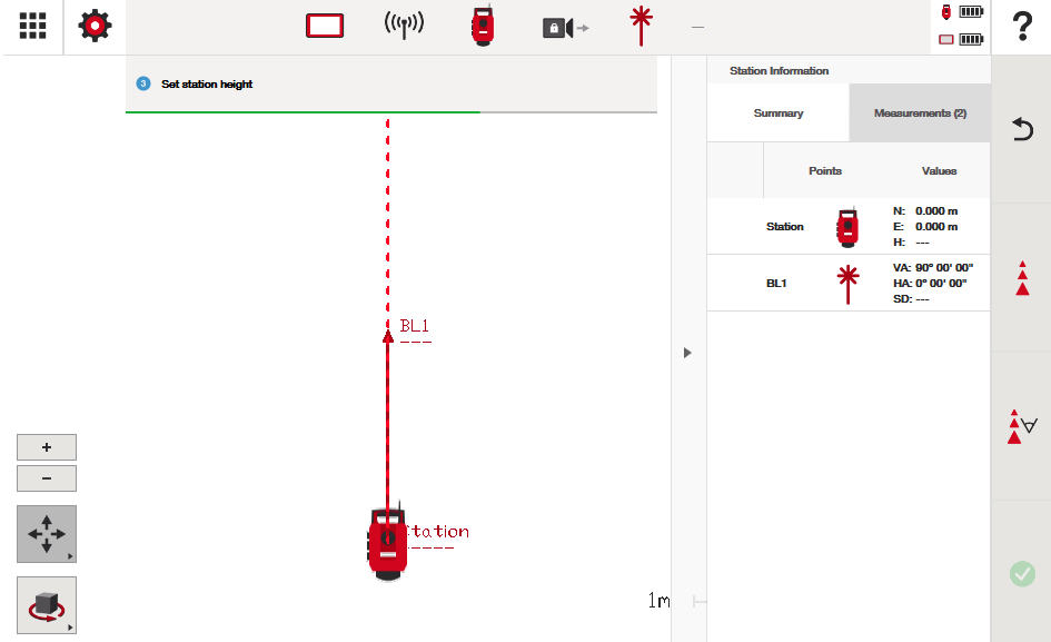 Zorg ervoor dat uw total station zich boven het punt bevindt dat u wilt laten representeren als 0,0 van uw project, en druk op het groene vinkje: