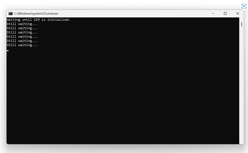 Er staat: "Waiting until SIM is initialized," gevolgd door "Still waiting..."