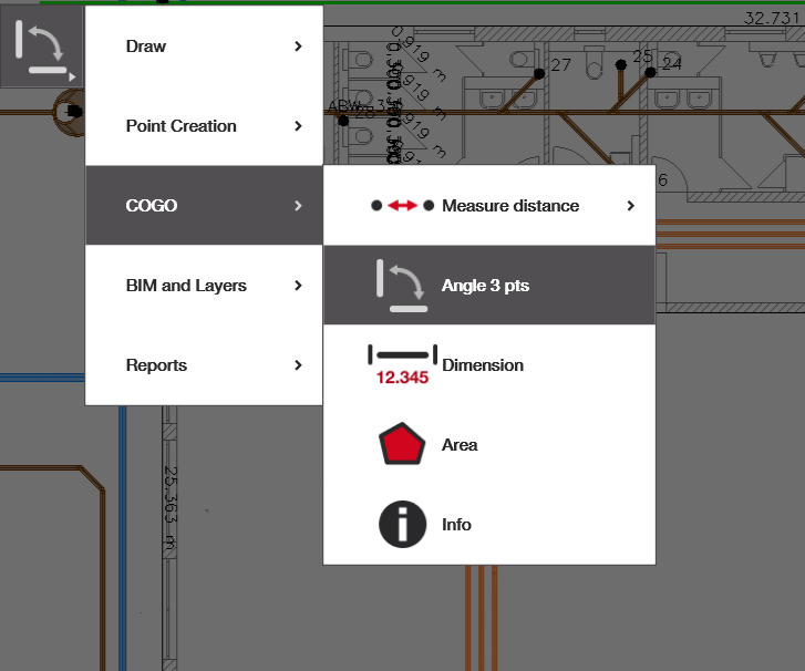 - Selecteer 3 punten en meet: Volg de aanwijzingen om je resultaat te krijgen.