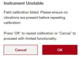 Gdy wywołana zostanie kalibracja w terenie, użytkownicy mogą zdecydować o odroczeniu kalibracji na 30 minut lub kontynuacji kalibracji. Uwaga – jeśli kalibracja zostanie odroczona, narzędzie skalibruje się automatycznie po 30 minutach bez możliwości ponownego odroczenia.