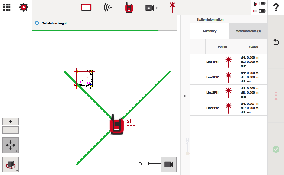 Observera att om du ställer in en stationshöjd under denna process är det alltid möjligt att gå tillbaka och justera den senare om du gjorde ett misstag. Du kan göra detta under stationeringsprocessen eller genom att gå till knappen för att redigera stationshöjd från startskärmen efter att du har slutfört din station. Se skärmbilder nedan: