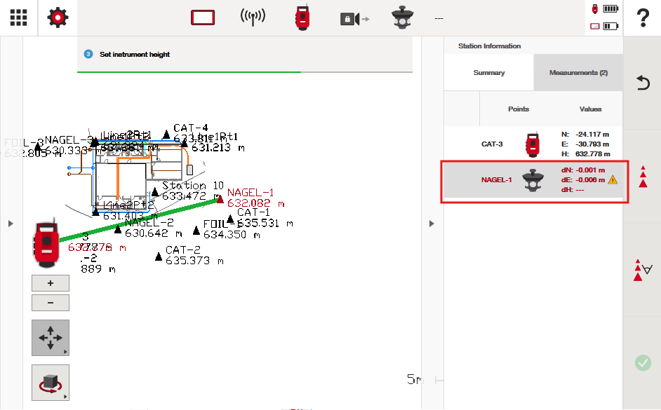 För att komma igång med höjder i denna stationeringsprocess, klicka på "Ställ in instrumenthöjd."