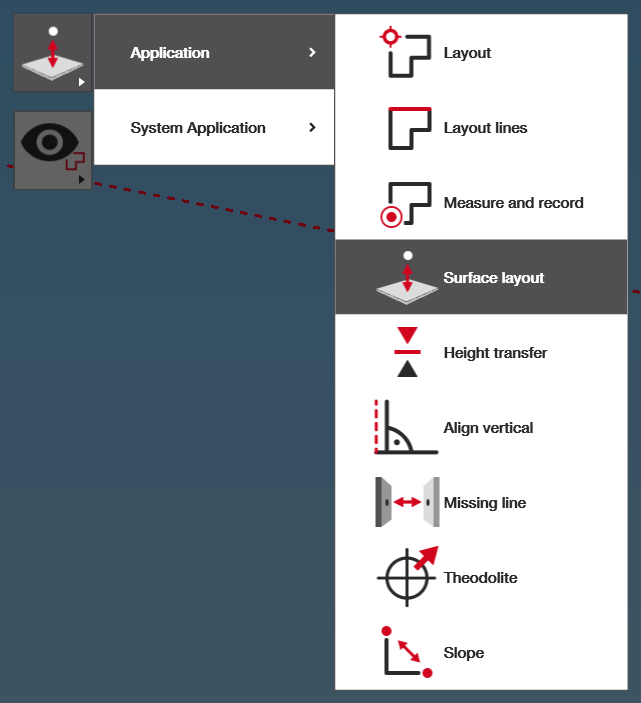 Applikationen Surface Layout används för att mäta det vertikala avståndet mellan en mätt punkt och en referensyta från en 3D CAD-ritning. Denna information hjälper till att bestämma det vertikala avståndet till önskad ythöjd.